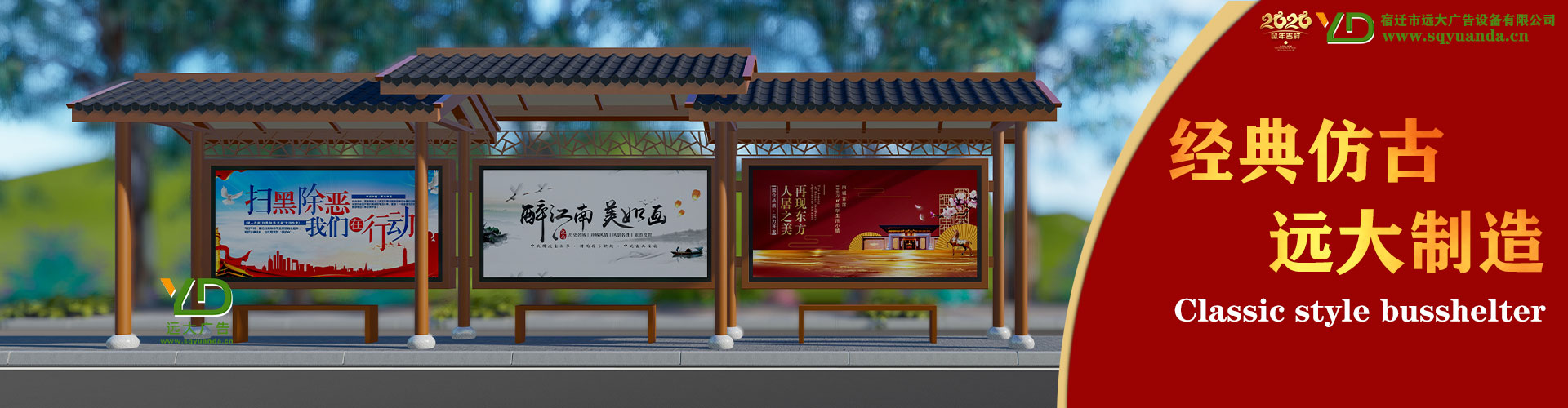 宿遷市遠(yuǎn)大廣告設(shè)備有限公司是一家專業(yè)生產(chǎn)公交候車亭,公交站臺,閱報(bào)欄,指路牌,廣告垃圾箱,滾動換 畫燈箱等系列產(chǎn)品廠家!產(chǎn)品多達(dá)上百種,亦可根據(jù)客戶的需求加工制作。